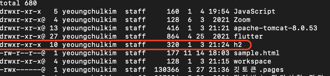 그럼 h2 라는 폴더가 생깁니다.